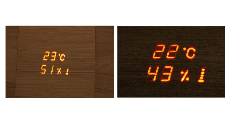 Aspectu on LED-valoin toteutettu saunan lämpö- ja kosteusmittari - Cariitti