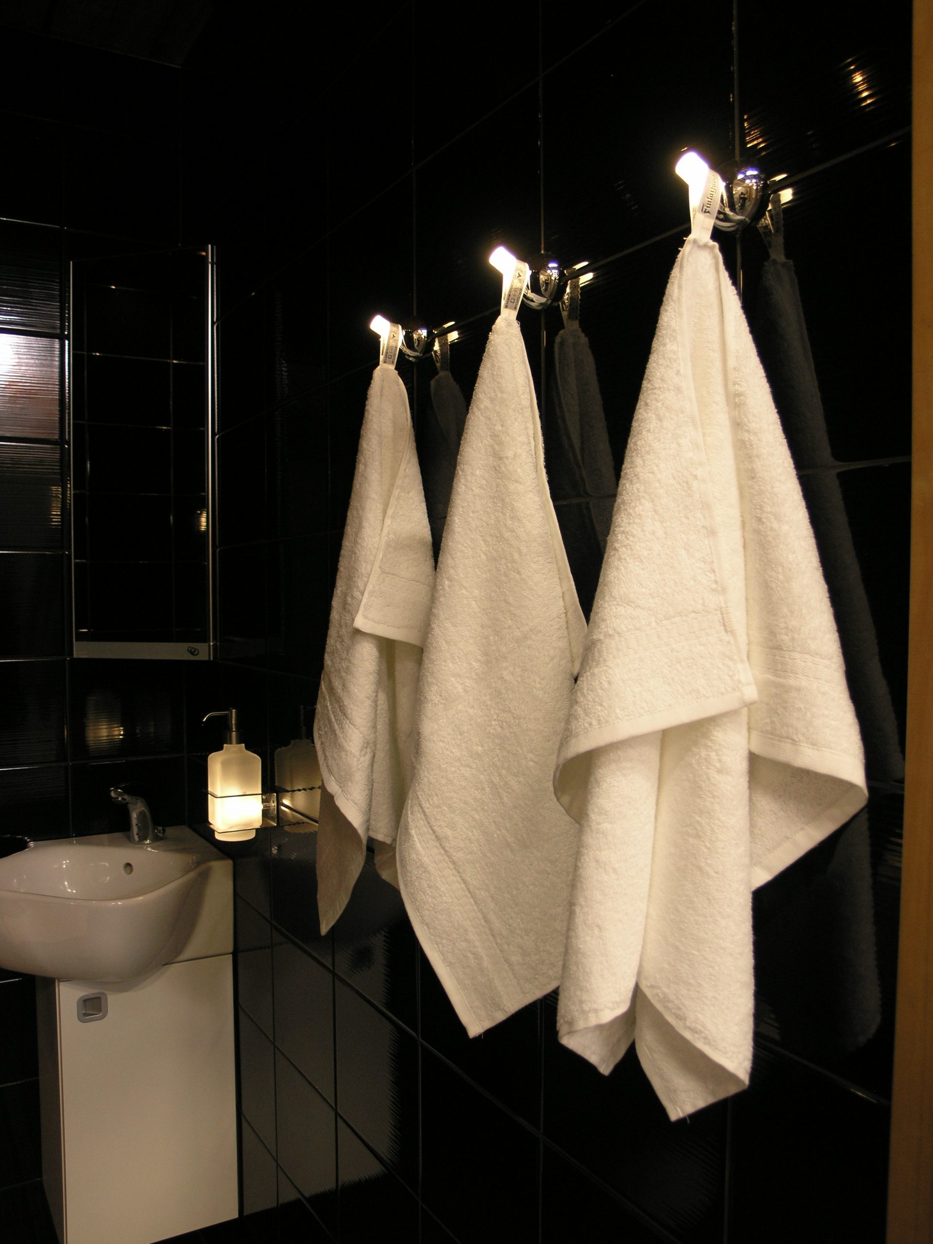 Der Handtuchhalter besteht aus satiniertem Glas und Edelstahl. Die Lichtquelle ist eine LED mit 1 W.