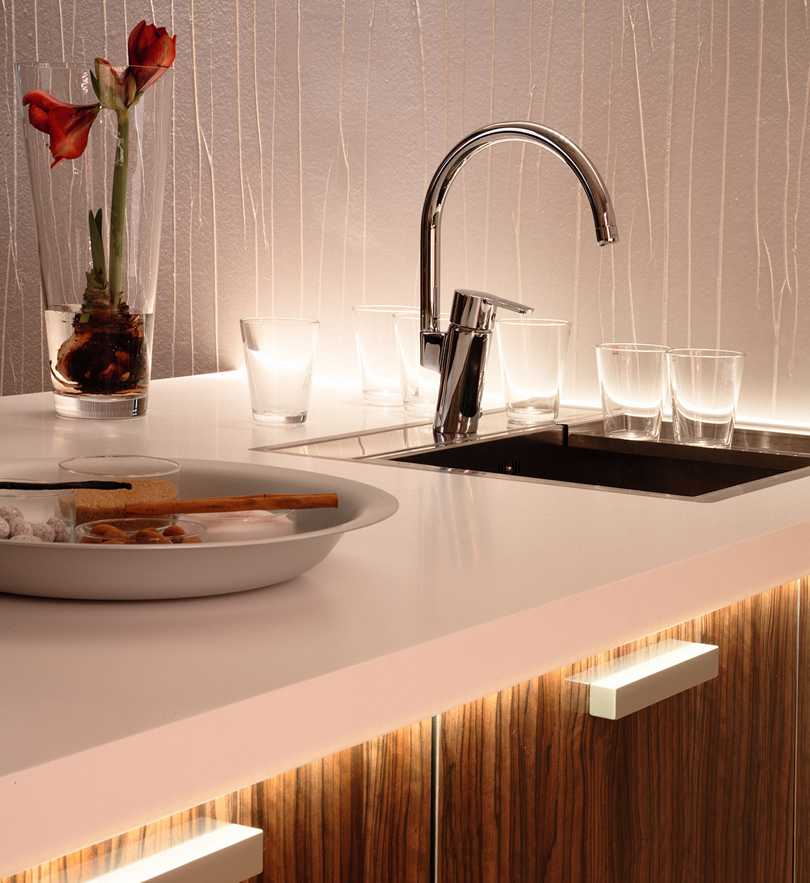 Huuhto LED profiles are ideal for indirect lighting and kitchen workspace lighting, and they can be installed in kitchen units. The LED lights produce minimal heat and have the advantage of low energy consumption and long lifetime.