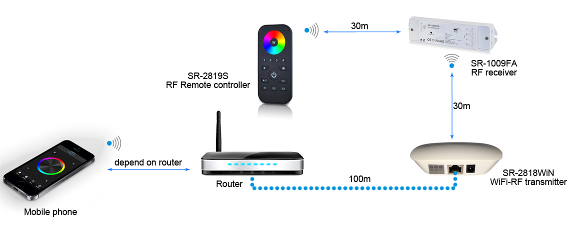 • Compatible with WIFI-RF converter and RF control panel.
