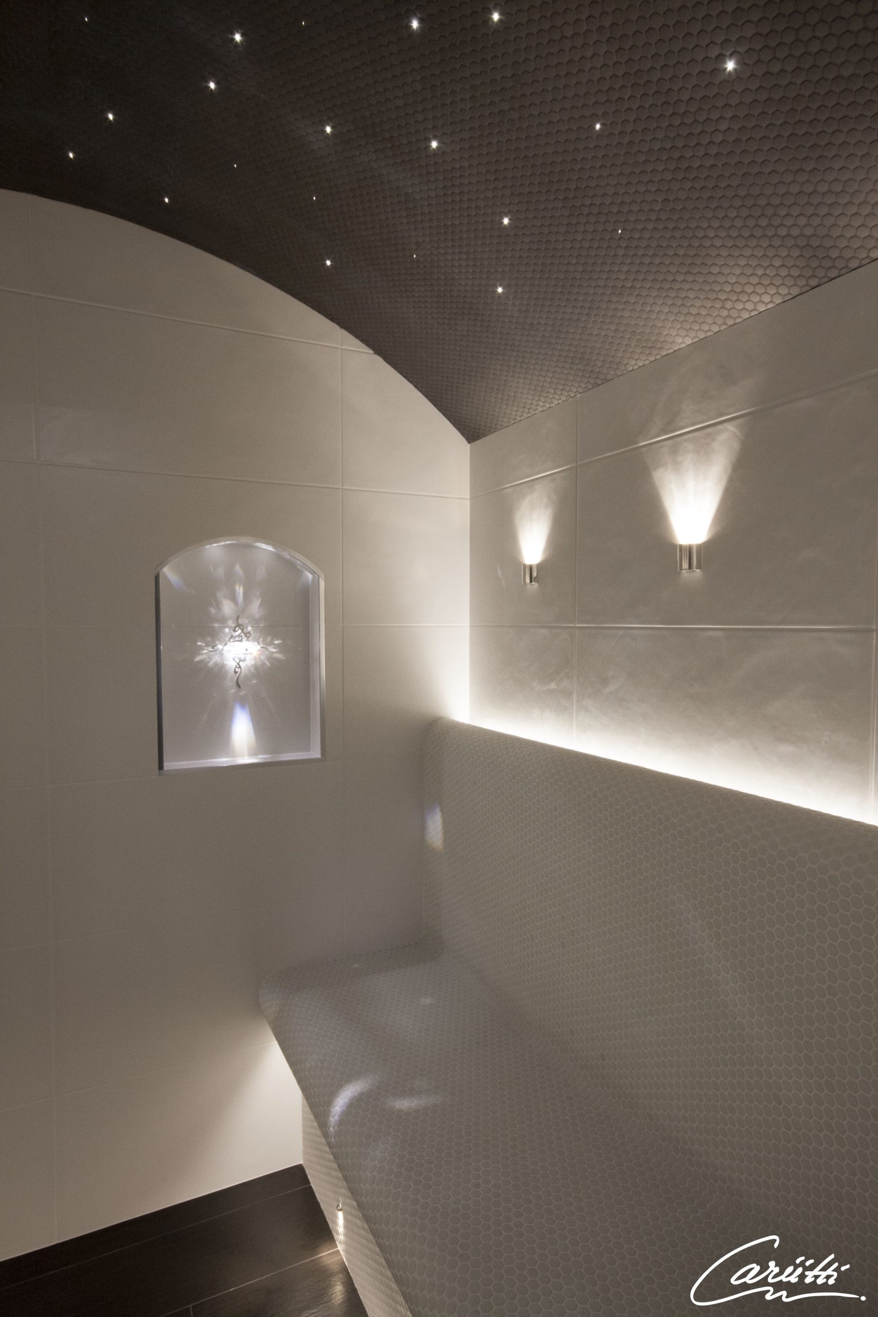 Kihla is a decorative crystal light fitting, ideal for a steam room. Can be illuminated with an LED or fibre Ø 4 mm.