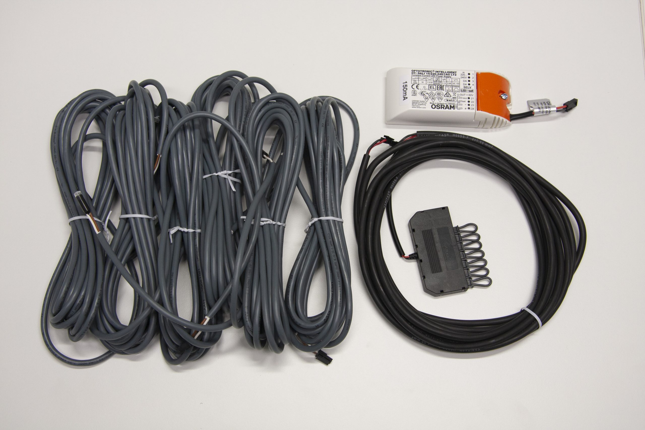 Power supply is the high-quality Osram OTi 15 DALI, which enables the dimming with a push-button or DALI dimmer. The set can be expanded with additional sets of 3 LEDs.