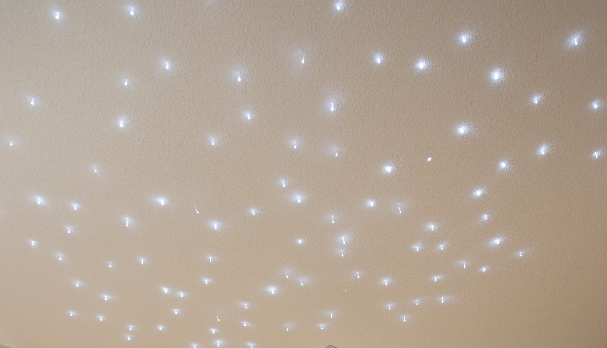 This starlight ceiling set includes 150 fibers, a VPL20L Led projector and a power supply.