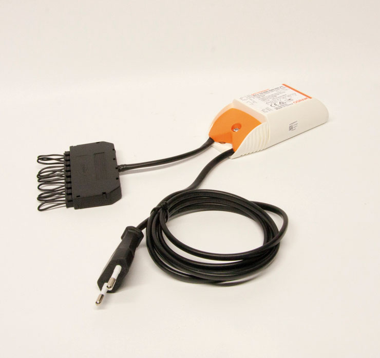 Led driver set for Leds 1W/350mA with a serial connection module, mains dimmable.