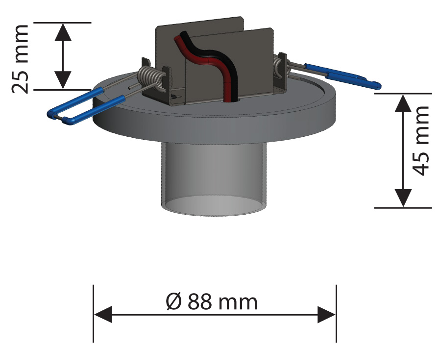 Loiste 24 is a ceiling Led spotlight, 7 W. This 24 V Led light is for parallel connection, it is quick and easy to install in new buildings and to replace old lights. Dimming with a 1-10 V light control.