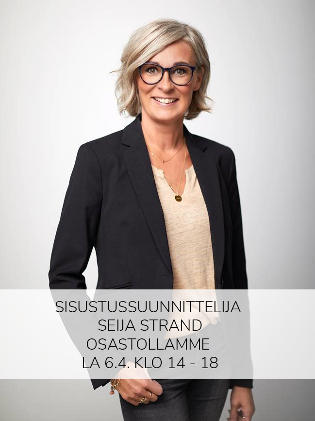 Seija Strand on osastollamme lauantaina 6.4. klo 14 – 18 auttamassa valinnoissanne, kun suunnittelette saunaa ja valaistusta saunaan ja kylpyhuoneeseen.