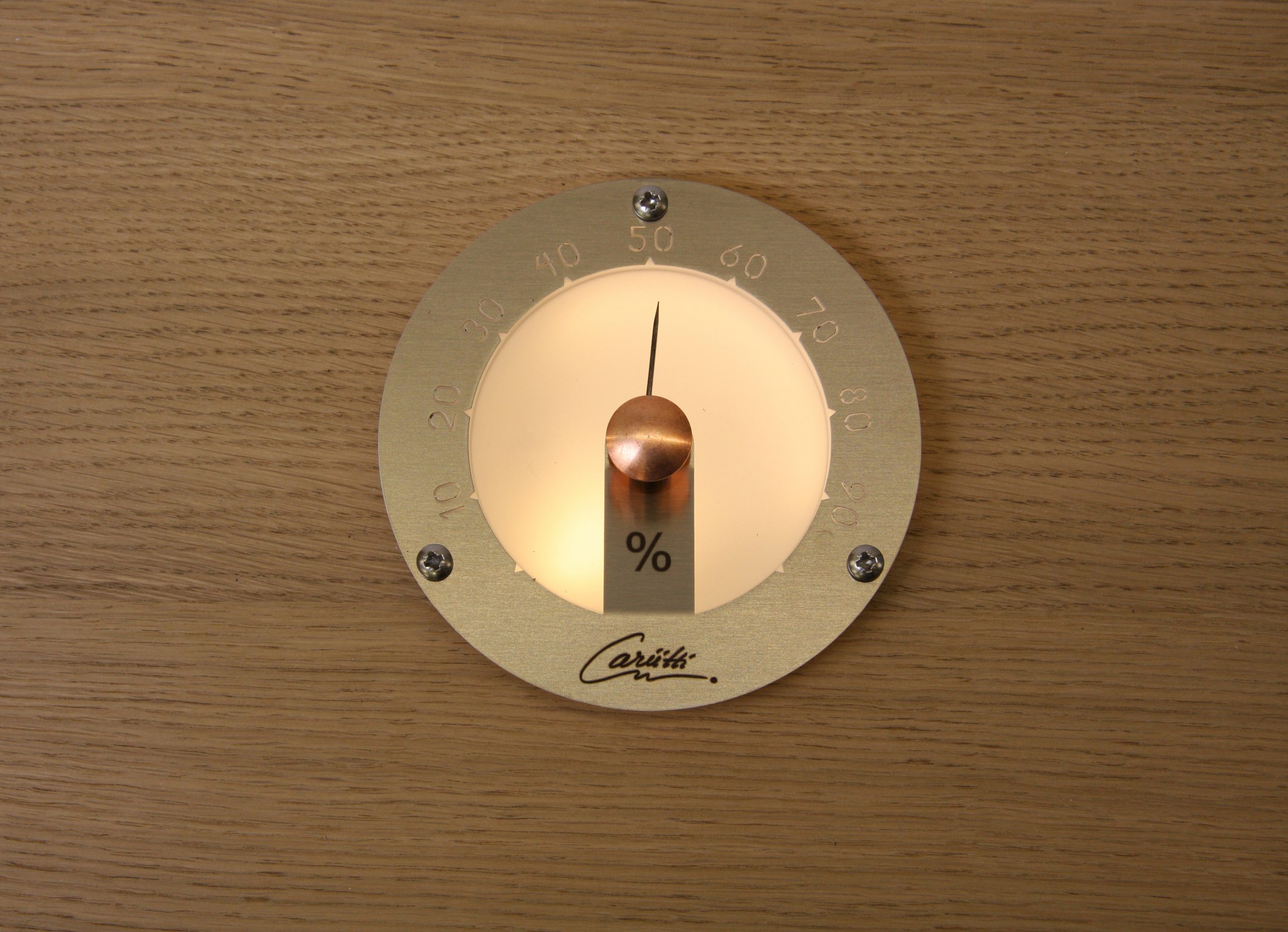 Гигрометр с подсветкой. Матовое стекло, шкала из нержавеющей стали. Подсвечивается одним волокном диаметром 2-6 мм.