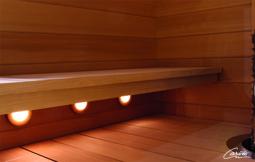 Круглый потолочный светильник, который хорошо подходит для освещения сауны и ванной.