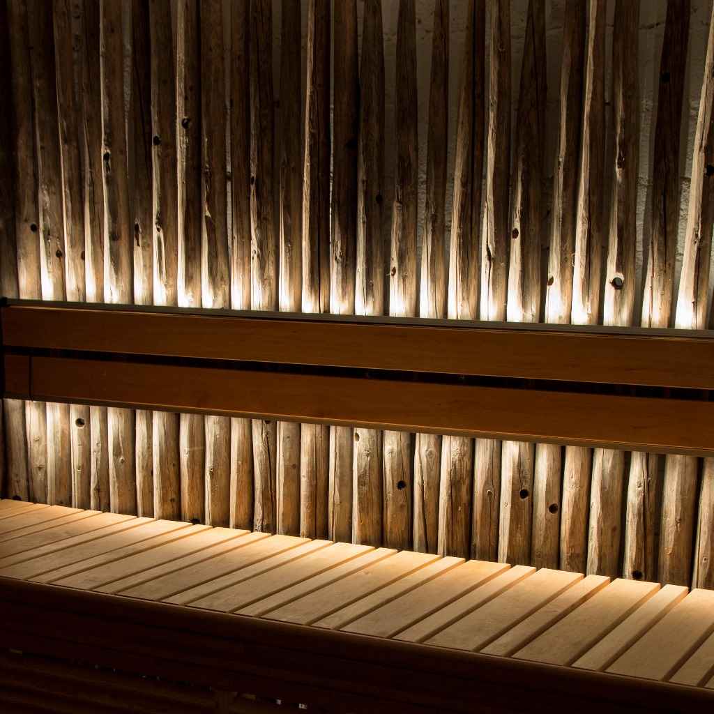 Комплект “Сауна Линеар” позволяет создать сплошную линию света за подспинником или под передним краем полков.