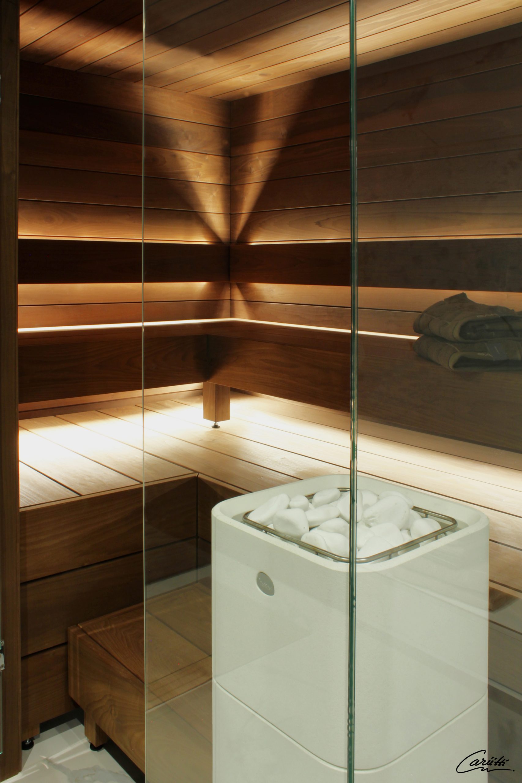 Линеары подсвечиваются с двух концов и сам линеар возможно укоротить на месте установки циркулярной пилой. Этот комплект легко установить также в готовой сауне. Все волокна, проектор и т.д. устанавливаются на поверхности конструкций.