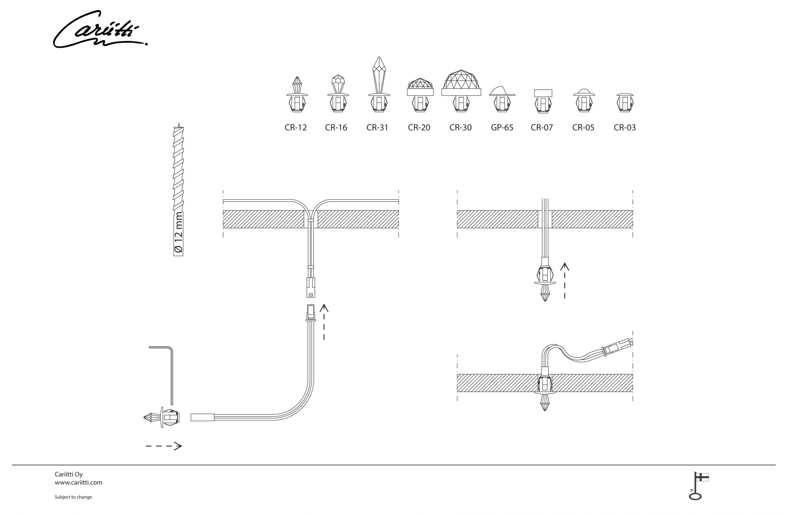 Asennusvalmiissa sarjassa on kuusi CR-05 kalustetta. Kalusteet on liitettävissä kaikkiin kuituihin, joissa on M5-pääteholkki.