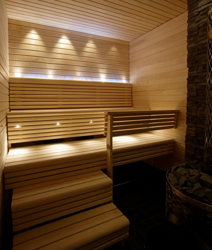 Kokonaisuus on helppo asentaa myös valmiiseen saunaan. Kaikki kuidut, projektori ym. pinta-asennuksena. Projektorin asennuskorkeus 70 cm lattiasta.