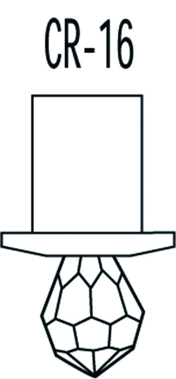 Kromin tai kullanvärinen CR-16 asennuskaluste, jossa on Swarovskin Strass -kristalli. Soveltuu käytettäväksi IP67 Led-sarjojen kanssa. CR-16 asennusreiän halkaisija ø 12 mm ja ulkohalkaisija ø 18 mm. Kristalliosan pituus 16 mm.