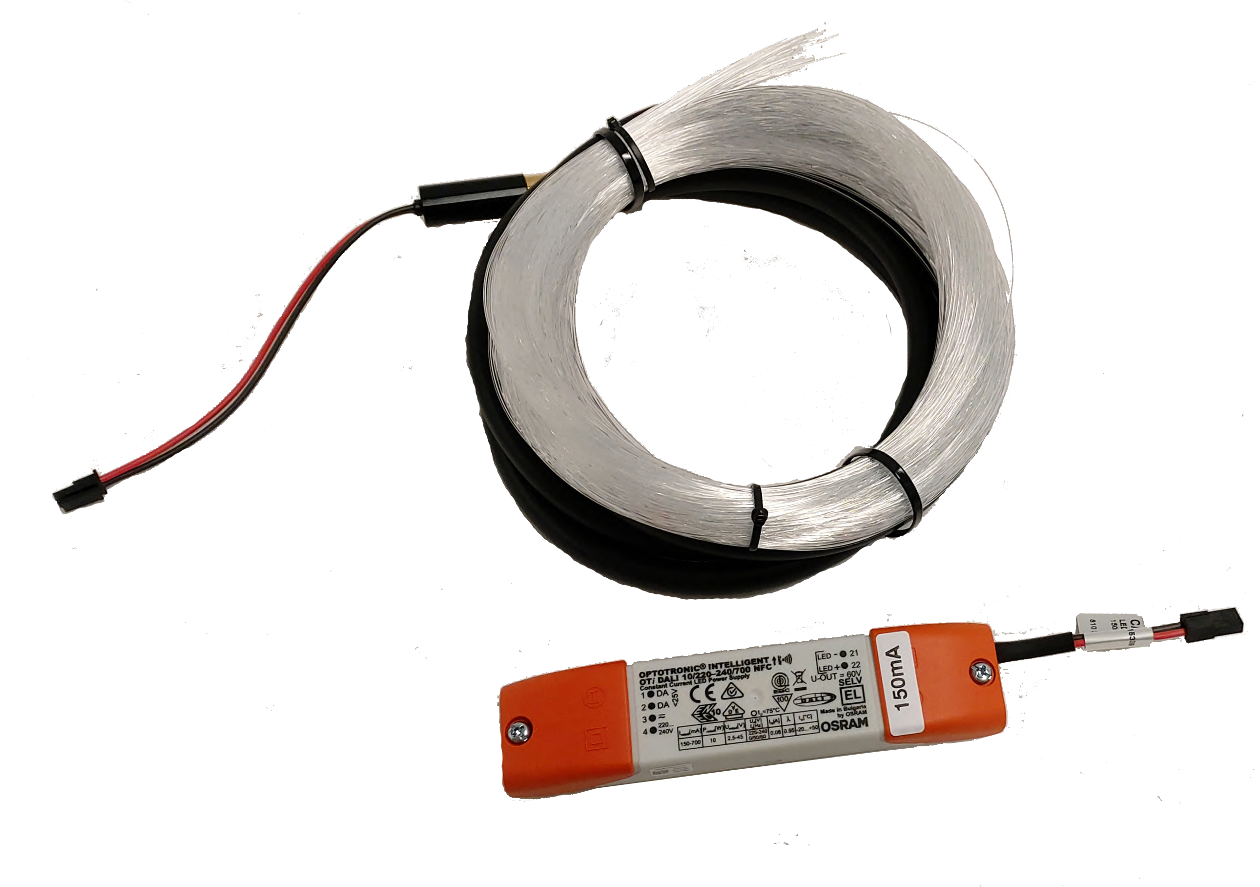 75-kuituinen tähtitaivasnippu, joka valaistaan ledillä. Suositeltava pinta-ala 1-2m². Voit valita värilämpötilan 3000 K tai 4000 K.